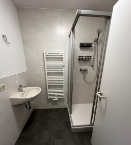 Das innenliegende Bad ist mit einer Dusche, einen Durchlauferhitzer und einem Waschmaschinenanschluss ausgetattet.